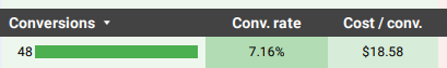 Our Performance Max campaigns use Google’s AI to its fullest potential, and after a brief training period, our campaign was able to achieve a nearly 10% conversion rate and an incredibly low cost per conversion of just $18.58.