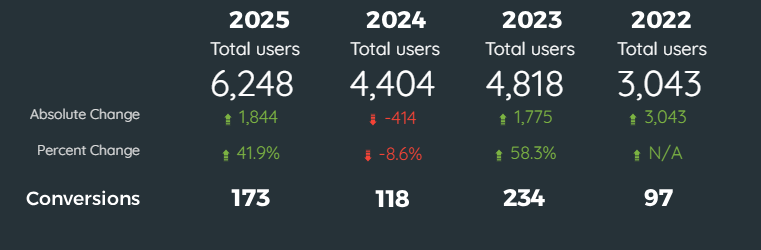 - Between organic, Google Business Profile and other search touchpoints, the client generated 173 organic leads in 2025.