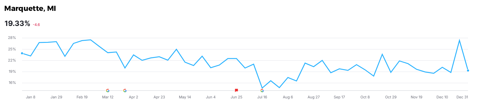 - A 19.3% presence on Google’s page 1 rankings for its target growth area.